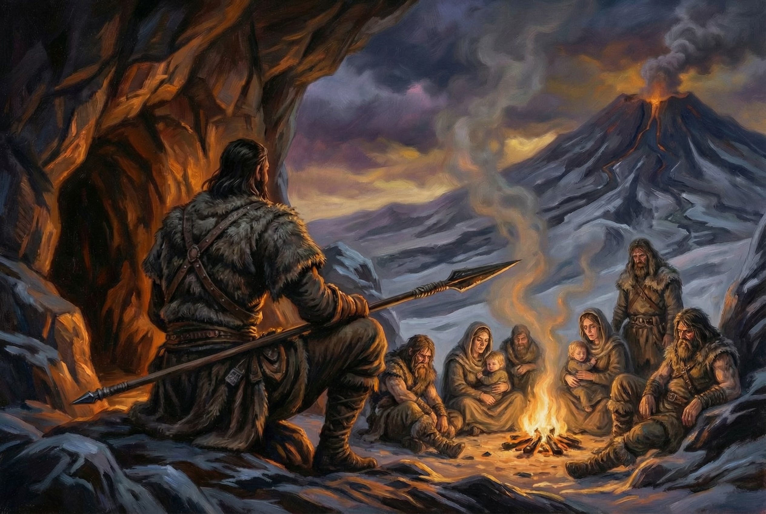 Gray light crept over the eastern peaks. Mist rose from the volcanic vents, mingling with falling snow, erasing the world’s edges. Thorgun had dozed despite himself, chin dropping to his chest, grip loosening on the spear.